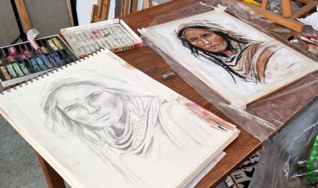 Peindre les femmes au pastel sec…. “La première date de ce stage n’est pas un hasard : le 8 mars, nous choisissons de regarder les femmes autrement, avec la douceur du pastel, l’intensité du pigment, et la dignité que chaque femme mérite indifféremment de sa couleur de peau.” Y avait-il un sujet plus naturel que…