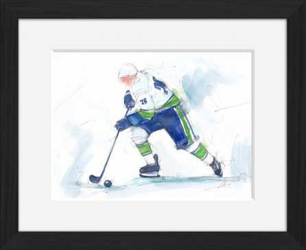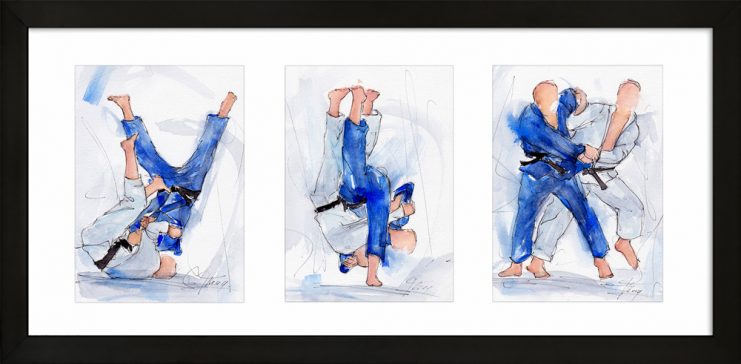 Mes créations en aquarelle sont une autre forme de représentation du sport. Cette technique basée sur la superposition de peinture très diluée donne vie au sujet par un jeu subtil de couleurs et de transparence. Bien mis en avant par un encadrement et un passe-partout, le rendu d’une aquarelle est unique.