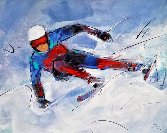 Thème : Tableau de sport / Sport d’hiver / Ski / Slalom Descente Taille : 40 X 50 cm Technique : mixte Prix : Contacter l’artiste Situation : le plaisir de la vitesse lors d’une des courses de la coupe du monde de ski alpin – Épreuve de descente Encadrement : sans encadrement (Cadre…
