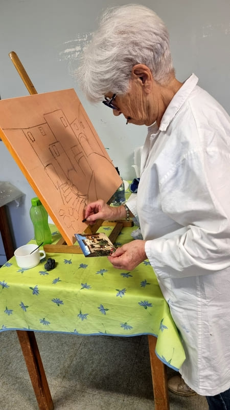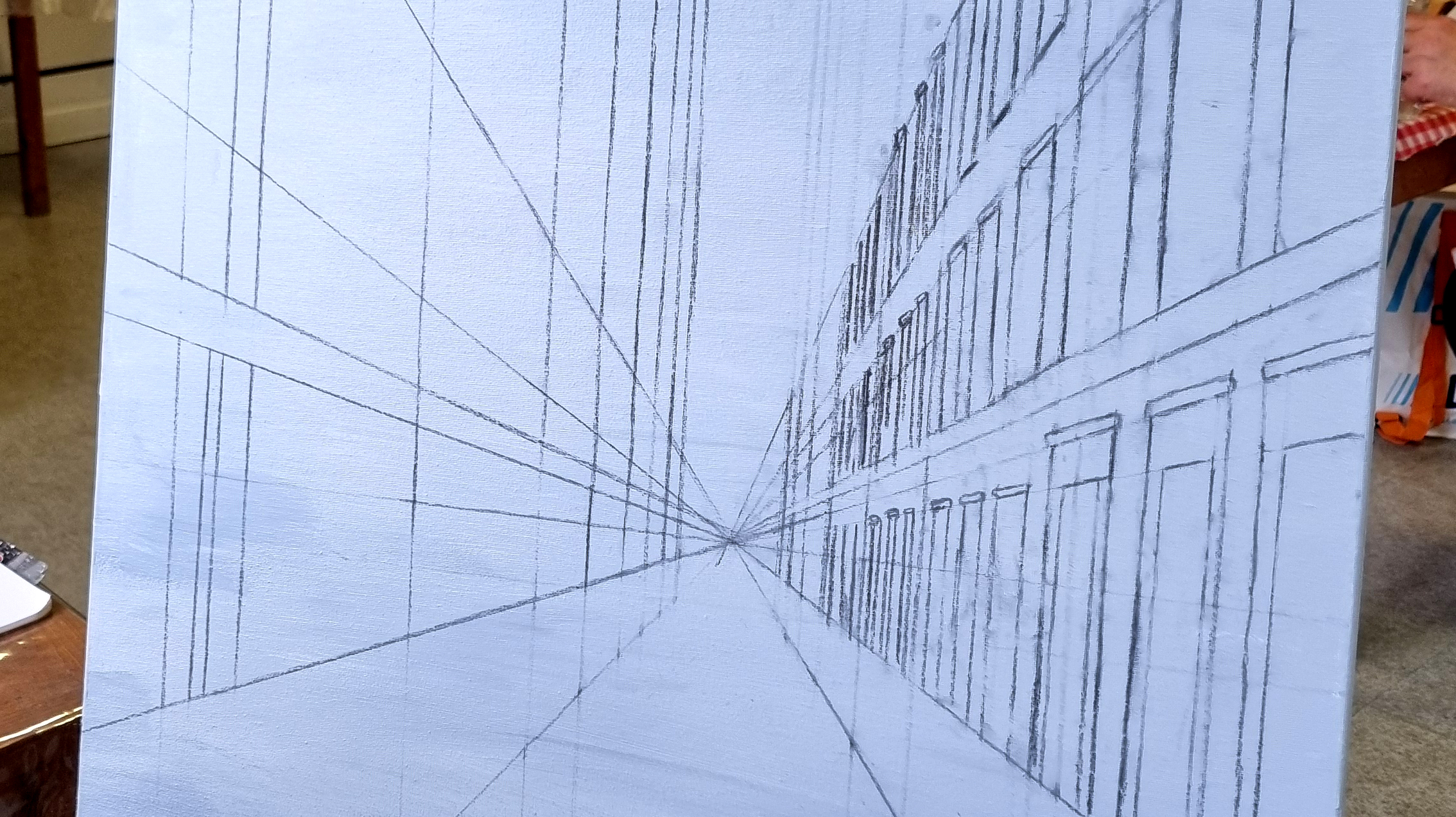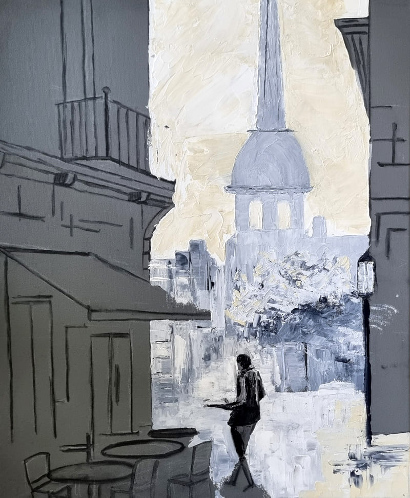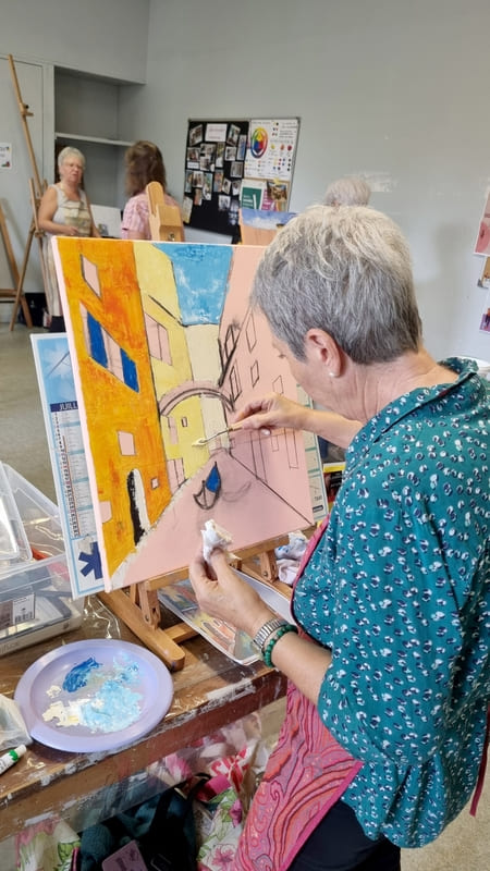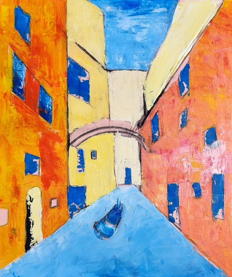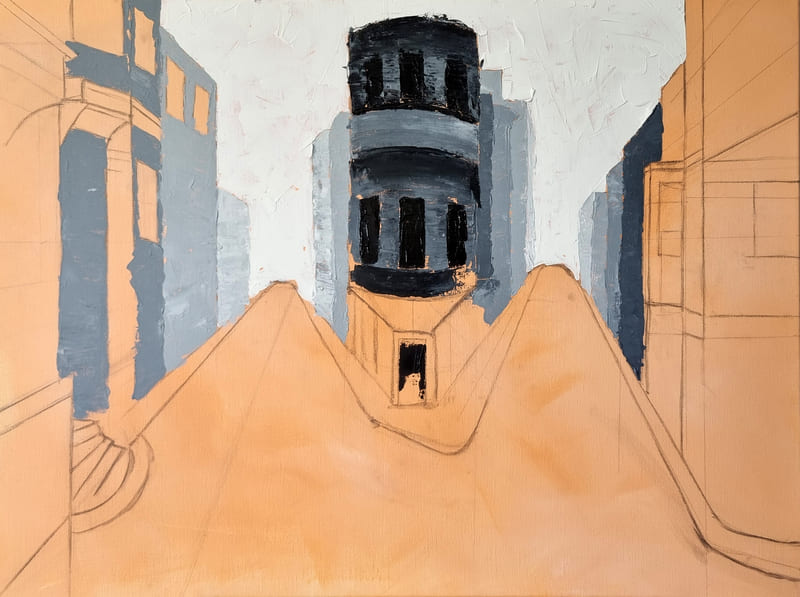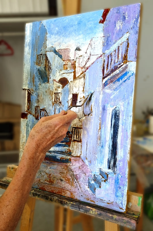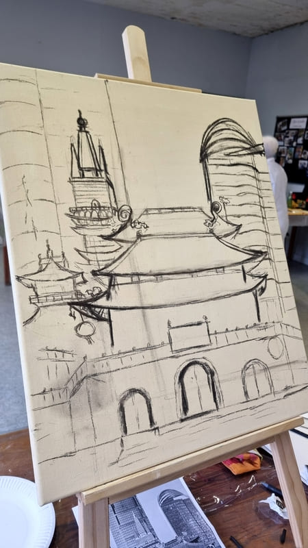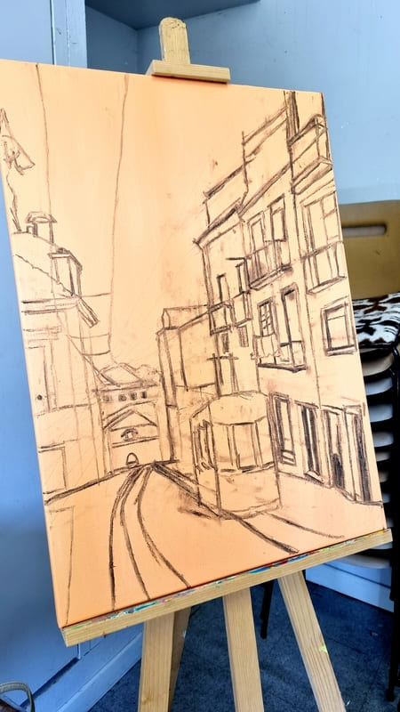Elle représente aussi un casse-tête récurrent pour nombre d’artistes, même confirmés, et ce, depuis six siècles. Alors, pour l’ouverture de la saison 2025-2026, nous voici lancés dans l’exploration de cette dimension moins picturale (quoique… il fallait quand même peindre au couteau !) et plus technique de la peinture. Avec des choix de sujets surprenants, incluant un, deux ou trois points de fuite… pourquoi faire simple ? Je vous emmène à la découverte du travail de mes stagiaires, non pas sur une, mais sur deux dates, car comme il n’y avait pas assez de place pour tous sur ce stage, j’en ai rajouté une.