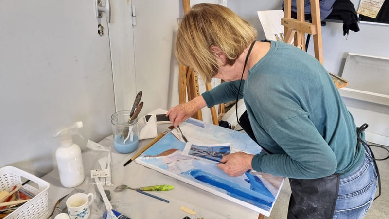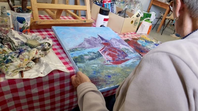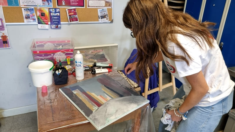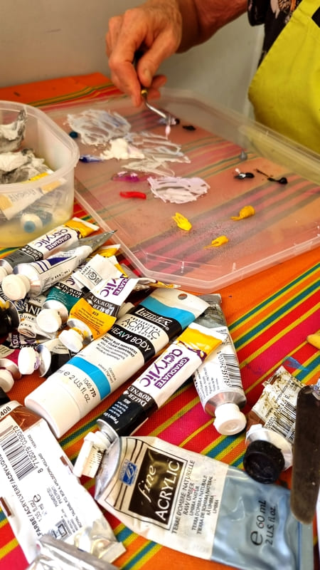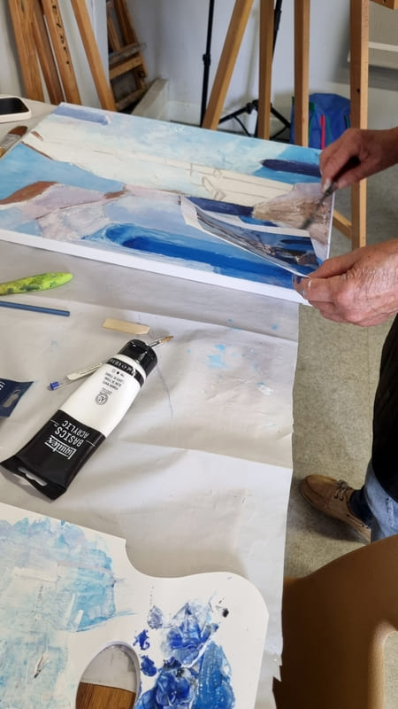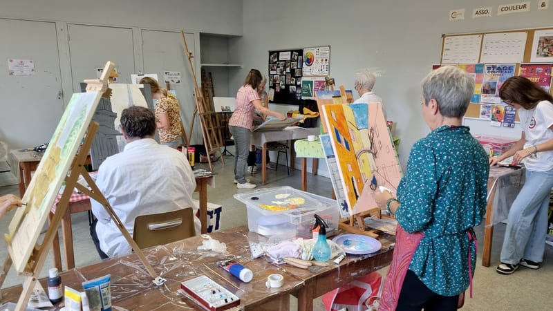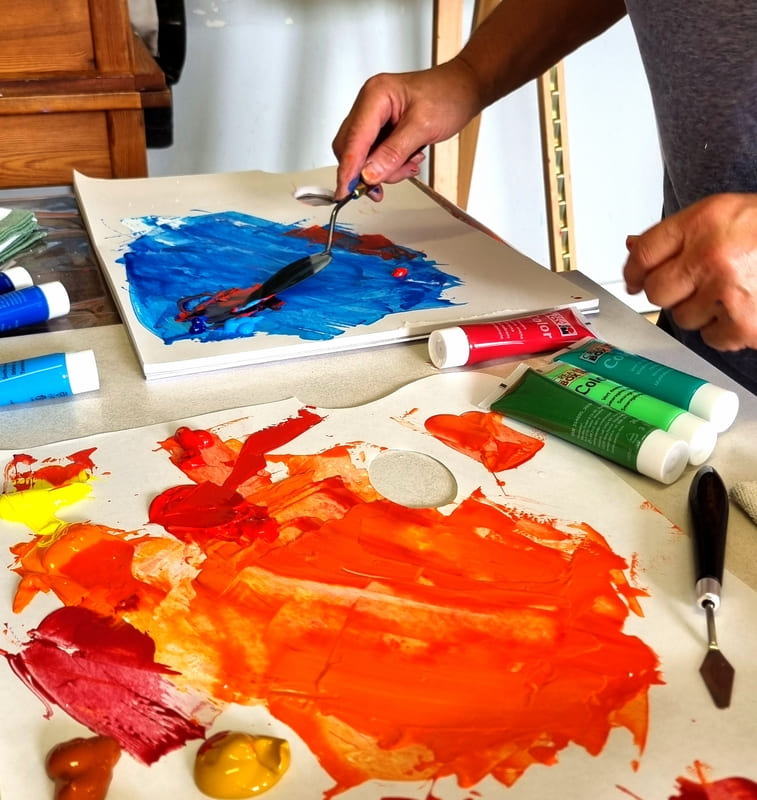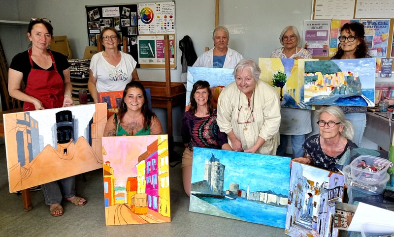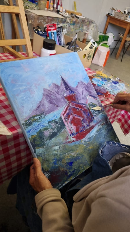 Comme toujours, ce fut un excellent moment de partage et d’apprentissage où chacun a pu, à son niveau, et en fonction de ses attentes et de sa vision, utiliser cette technique importante dans la peinture. Les différents couteaux et la couleur étaient néanmoins là pour reposer un peu les méninges … quoique ! Encore merci à tous pour votre bonne humeur et bravo pour vos réalisation ! Au plaisir de se retrouver lors d’un prochain stage.